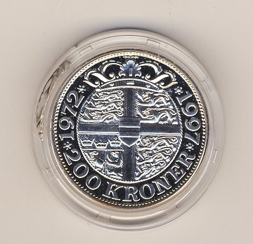 200 kr 1997 Proof FINSØLV - 25 års regeringsjubilæum