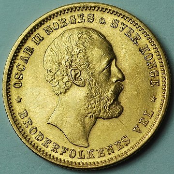 Norge, Oscar II, 20 kr GULD 1878 - NM 5, KM 355 *Pæn kvalitet*