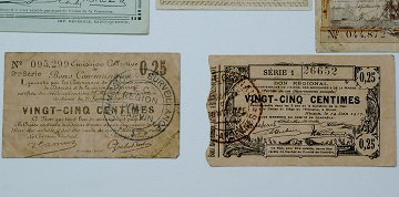 Interessant samling franske nød- og privatpengesedler