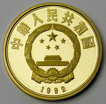 Kina, 100 yuan GULD 1992 Proof - KM 440