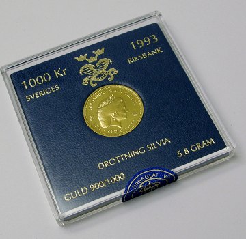 Sverige, 1000 kr GULD 1993 Ucirkuleret - *Dronning Silvia 50 år*
