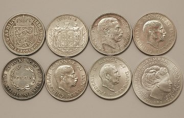 Bestående af 2 kr 1923, 1930(2), 1937, 1945(2), 1958 samt 5 kr 1972.