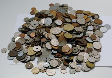 Større lot blandede mønter fra bl.a. Danmark, Finland, Sverige, USA, Belgien m.fl. Over 2,9 kg.