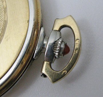 Omega, elegant lommeur i kasse af guld, skive og kroneknop med koraldekorationer, sort krans med arabertal og minutinddeling i guld samt separat sekundviser. Bagkapsel af guld med fabriksfremstillet monogram. Dia. 43,6 mm.