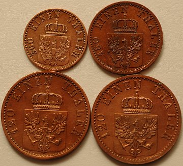 Preussen, Wilhelm I - Lot pfennig-mønter i pæn kvalitet
