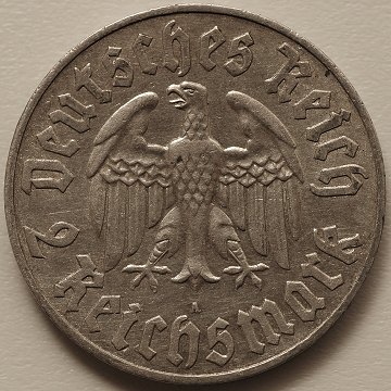 Det Tredje Rige, 2 reichsmark SØLV 1933A - KM 79