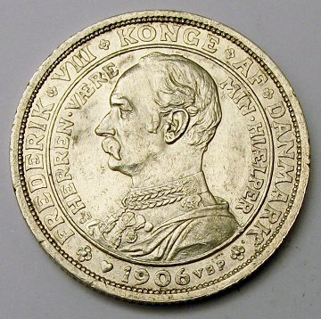 Frederik VIII, 2 kr SØLV 1906 - H. 3