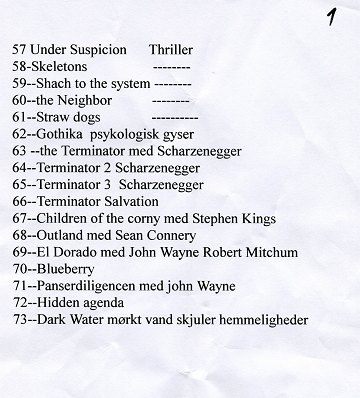73 stk. DVD film med action-, eventyr- og dramatitler ifølge listen, som ses under de yderlige illustrationer.