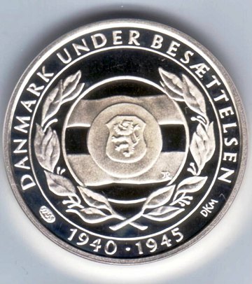 Præget i erindring om Danmarks befrielse efter den tyske besættelse 1940-1945.
