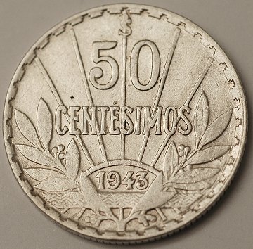 Uruguay, 50 centesimos SØLV 1943 - KM 31