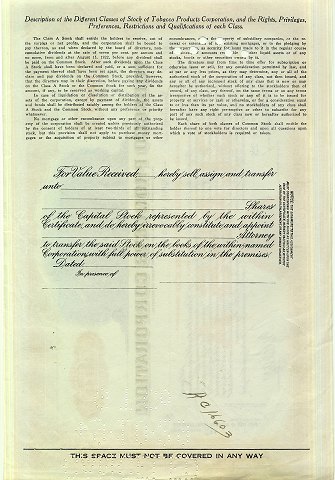 Tobacco Products Corporation - Amerikansk aktie fra 1929