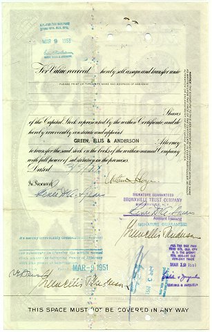 Interessant annulleret amerikansk aktie (10 common aktier) fra tiden efter børskrakket på Wall Street og den efterfølgende "Store Depression", dette er aktier i kulindustrien. Stemplet "JUL 1 1946".