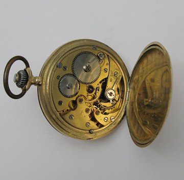 Schweizisk J.W dobbeltkapslet lommeur af 14 kt. guld med hvid emailleskive, arabertal og separat sekundviser. Både yder og inderkapsel af 14 kt. guld. Diam. ca. 50 mm. Vægt ca. 88,5 gr.