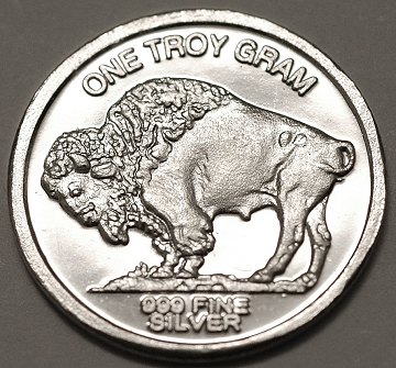 Samlersølvbarre præget som "mønt" på 1 gr. finsølv.