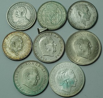 Lot danske jubilæumsmønter af SØLV - 8 stk.