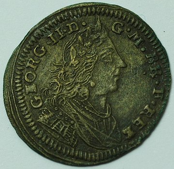 Lot overvejende danske skillingsmønter samt engelsk medaille/jeton, præget m. George II.