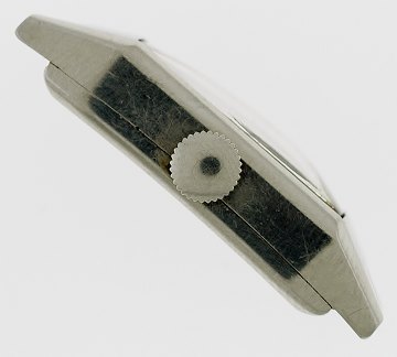 Vintage damearmbåndsur fra Omega, i art deco-stil i aflang kasse af poleret ædelstål, cremefarvet skive m. arabertal, coboltblå visere, buet plexiglas, manuelt optræk. Urkassens mål: 15,5 x 24,8 mm.