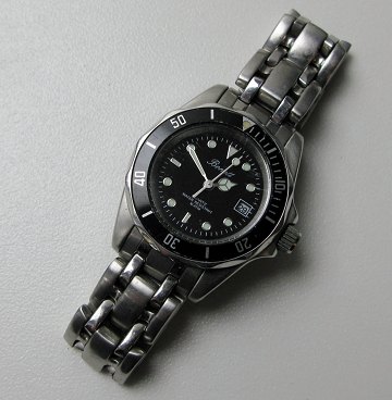 Bonett Denmark damearmbåndsur i kasse af poleret stål, flexlænke med flip-lock. Sort skive med punkt og stregindikation, dato i #3 position. Kvartsværk. Diam. ca. 30,5 mm.