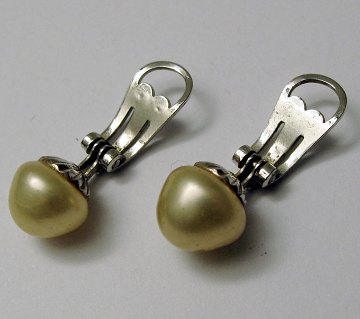 Par øreclips af SØLV, dekoreret med kunstperle. Stemplet 600. Perle Diam. ca. 9½ mm.