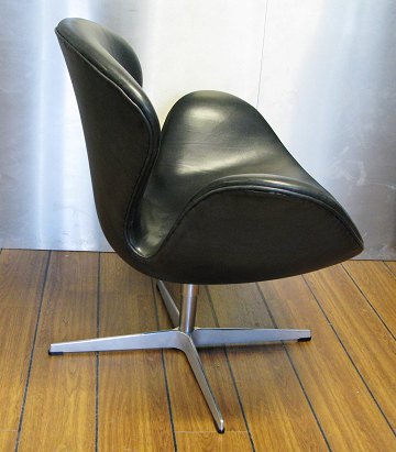 Arne Jacobsen: Svanen. Hvilestole på drejestel med helstøbt profileret stamme og firpas fod af aluminium, betrukket med originalt patineret sort skind. Model 3320. Udført hos Fritz Hansen, 1965. Ryg H. ca. 79 cm., sæde H. ca. 41 cm.
