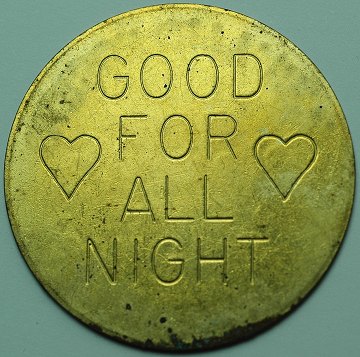 Pikant amerikansk token af messing fra etablissementet "Fat Ann´s saloon" i Carson City, Nevada, der var et berygtet bordel. Ø. 39 mm.