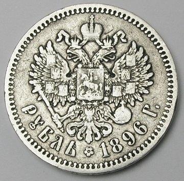 Rusland, Nikolai II, rubel sølv 1896, finsølvindhold 18 gr.