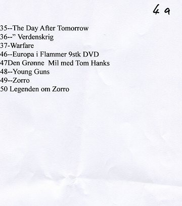 50 stk. DVD film med action-, eventyr- og dramatitler ifølge listen, som ses under de yderlige illustrationer.