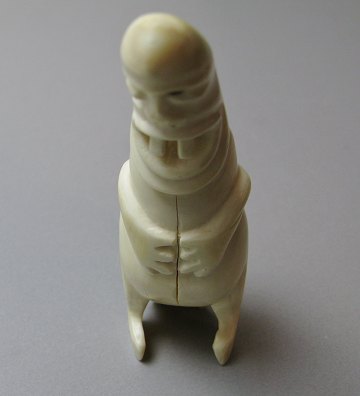 Grønlandica, tupilak i form af dæmon med maskaron bagtil, håndskåret af kaskelothvaltand, H. ca. 11 cm. Tupilakken er del af en større samling, indkøbt i 1970'erne hos KGH, Kongelig Grønlandsk Handel i Thule og Sdr. Strømfjord. Proveniens: tidligere ansat kontorass. hos DAC - Danish Arctic Contractors 1972-76 og 1978-80