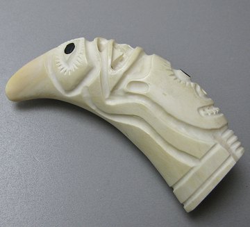 Grønlandica, tupilak i form af dæmon, håndskåret af kaskelothvaltand, H. ca. 11 cm. Tupilakken er del af en større samling, indkøbt i 1970'erne hos KGH, Kongelig Grønlandsk Handel i Thule og Sdr. Strømfjord. Proveniens: tidligere ansat kontorass. hos DAC - Danish Arctic Contractors 1972-76 og 1978-80