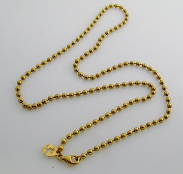 Halssmykke med perlerække og karabinlukke med vedhæng af forgyldt sterling sølv. L. ca. 69 cm. Vægt ca. 27,5 gr.