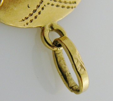Vedhæng af 14 kt. guld i form af hestehoved i hestesko, ca. 21 x 19 mm. Vægt ca. 2,5 gr.