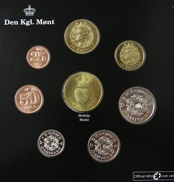 Møntsættet indeholder samtlige mønter i Danmarks møntserie: 20-, 10-, 5-, 2-, og 1-kr samt 50- og 25-øre. Endvidere indeholder sættet en medaille, der er kopi af en mindemedaille som Christian V lod præge i anledning af indvigelsen af flydedokken i Øresund 10. november 1691.