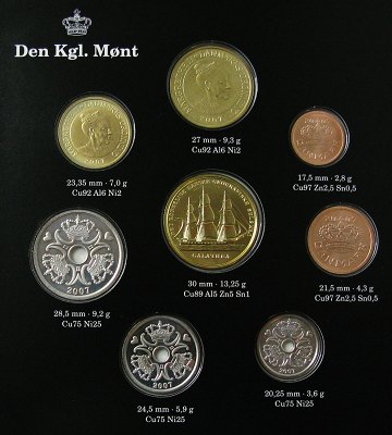 Møntsættet indeholder: 50 øre, 1 kr, 2 kr, 5 kr, 10 kr, 20 kr samt årets møntsætmedaille, der er en kopi af Det Kgl. Danske Geografiske Selskabs Galathea-medaille, der blev indstiftet 28. april 1916.
