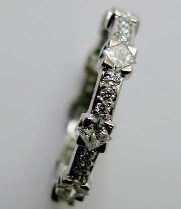 Ring af 14 kt. guld, prydet med talrige brillant- og princess-cut diamanter, Wesselton Top Crystal VS/SI, tilsammen 1,00 ct. ifølge det medfølgende STONES certifikat. Str. 54½, vægt ca. 2,2 gr.