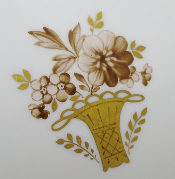 Royal Copenhagen "Golden Basket", dess. 595, ovalt fad af porcelæn, gulddekoreret med blomster i kurv, ca. 38 x 27 cm. 1. sortering.
