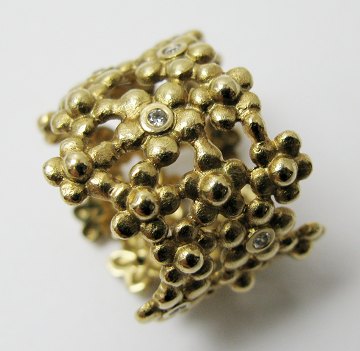 Ole Lynggaard, bred ring af 14 kt. guld med brillanter