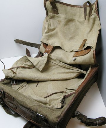 Svensk tornyster fra I. verdenskrig 1914/1918 af canvas med læderremme. Nummereret 309 og 32/35. Ca. 32 x 40 cm.