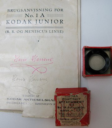 KODAK Junior bælgekamera model 1 A i original salgsæske fra tiden omkring år 1910. 139 mm. Anasticat optik og ekstra portrætlinse medfølger. Kamera i nedlukket stand ca. 22 x 11 cm.