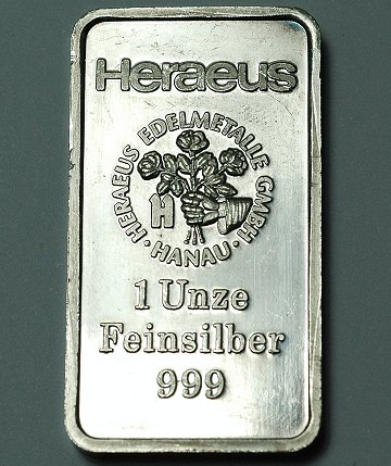 Sølvbarre fra Heraeus.