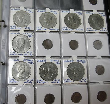 England - samling 1917 til 1981 med ca. 209 mønter, bl. a. 1 farthing, ½ penny, penny, shilling, 6-pence og 1 crown mønter.