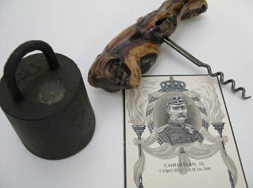 Fransk proptrækker, brevkort Christian IX og 1 kg. vægtlod