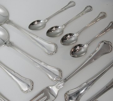 29 dele Frigast - Anne Marie bestik af sølvplet, bestående af 12 middagsgafler, 5 middagsskeer, 6 frokostskeer og 6 théskeer.