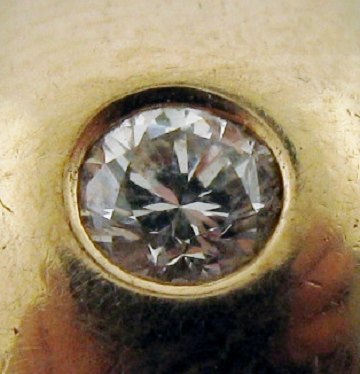 Ring af 14 kt. guld, prydet med brillantsleben diamant på ca. 0,10 ct. Samlet vægt ca. 3,9 gr. Str. 57.