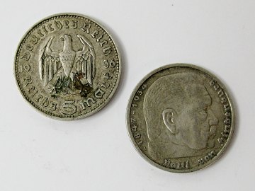 Tyskland, Tredje Rige, 5 mark SØLV 1935A/1936F (2)- KM 86
