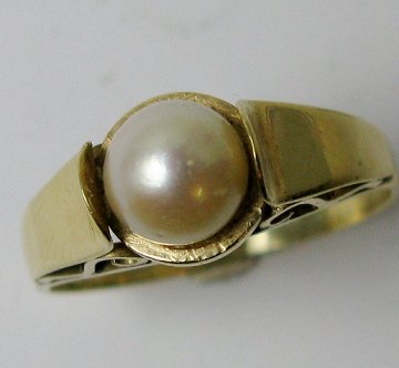 Ring af 14 kt. guld fra guld- og sølvsmed, Hermann Siersbøl, prydet med perle, 6 mm. Indvendig stemplet "585 HS". Str. 52, samlet vægt ca. 2,3 gr.