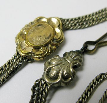 Lommeurskæde af forgyldt og forsølvet metal fra slutningen af 1800'tallet. L. ca. 31 cm.