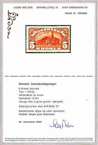 Danmark. AFA 67. Ubrugt posthus med fejlfri attest Lasse Nielsen. AFA kr. 3.000.-