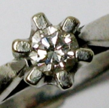Ulrich design solitaire ring af 14 kt. hvidguld, prydet med brillantsleben diamant på 0,16 ct. Wesselton VS i særdeles god cut. Str. 58, totalvægt 3,0 gr.