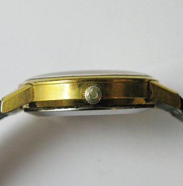 Omega Automatic Vintage herrearmbåndsur i kasse af gulddoublé, champagnefarvet skive med stregindikationer og datoangivelse i #3 positionen. Diam. ca. 34,5 mm. Monteret med nyere læderrem.