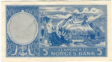 Norge 5 kr. 1956 "Portræt og fjordlandskab" UCIRKULERET